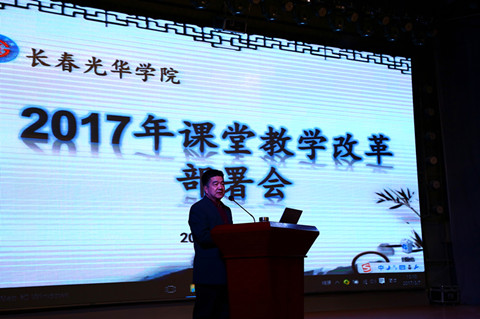 3月7日下午,我校在图书馆大礼堂召开了“2017年课堂教学改革部署会”。相关校领导、各院(部)院长(主任)、副院长(副主任)、系(教研室)主任、教学秘书,第一、二轮课改试点教师,教务处、教检中心、教师教学发展中心全体人员与会。会议由李文国副校长主持,张德江校长对第一轮课改的情况进行回顾和总结,并就第二轮课改工作做了进一步的动员和部署。