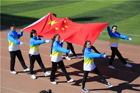 随着运动员进行曲的响起,国旗队、校旗队、花束队、刀旗队、教职工方队及各学院运动员方队在响亮、整齐的口号声中踏着整齐的步伐经过主席台,接受学校领导的检阅。他们个个衣着鲜艳,面带笑容,昂首阔步,展示了青年特有的朝气与活力。