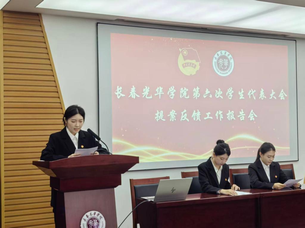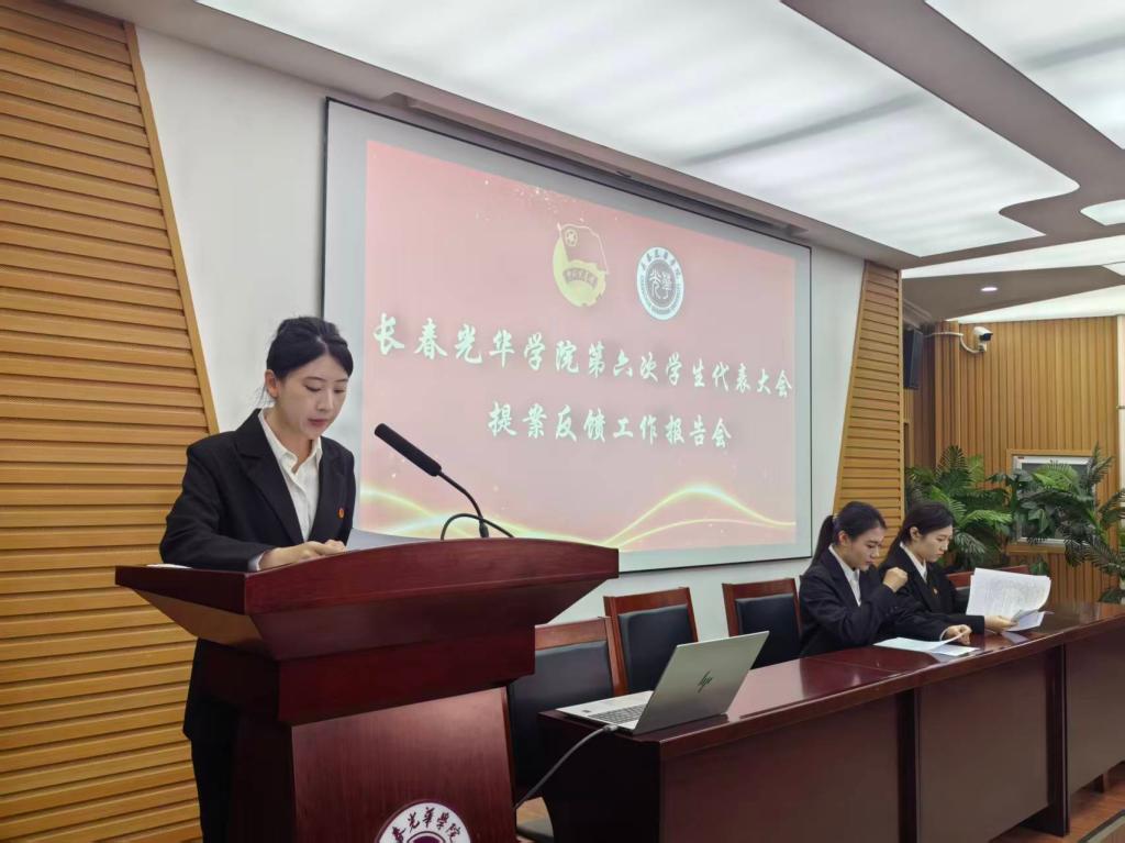 为深入落实学生会全心全意为同学服务的宗旨,畅通学生诉求反馈渠道,近日,长春光华学院召开第六次学生代表大会提案反馈工作报告会,校学生会主席团成员及学生代表参加会议。