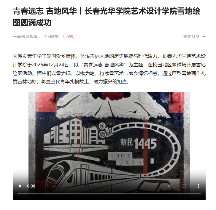 一点资讯|青春远志 吉地风华丨长春光华学院艺术设计学院雪地绘图圆满成功