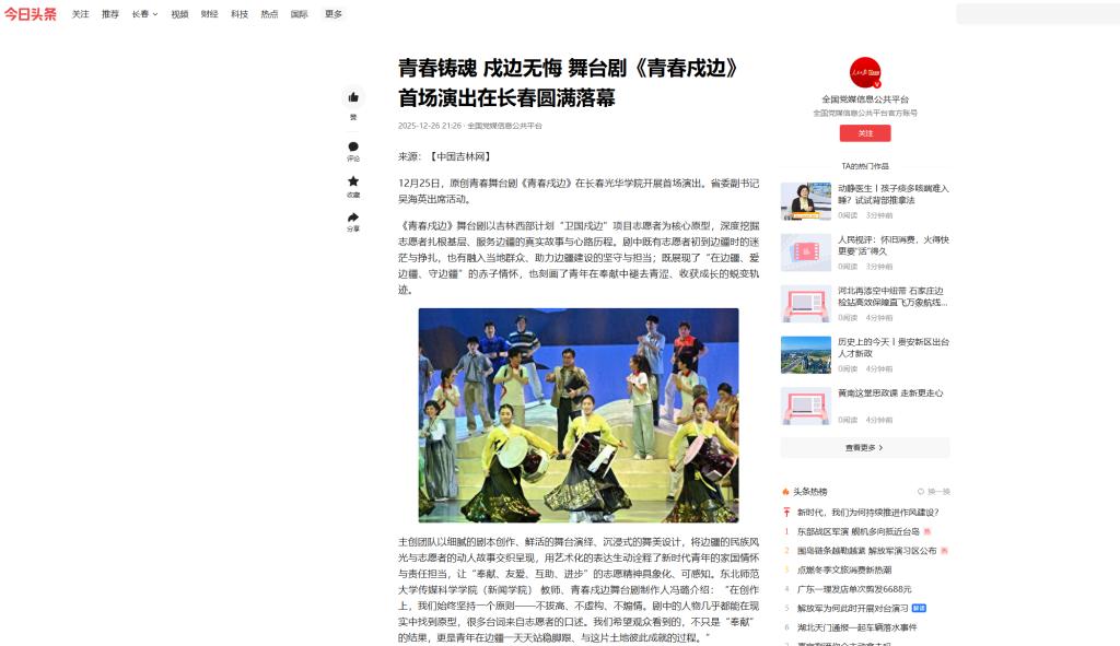 中国吉林网|青春铸魂 戍边无悔 舞台剧《青春戍边》首场演出在长春圆满落幕