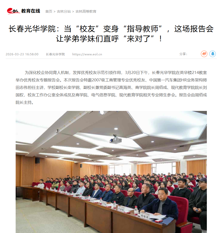 教育在线|长春光华学院:当“校友”变身“指导教师”,这场报告会让学弟学妹们直呼“来对了”!