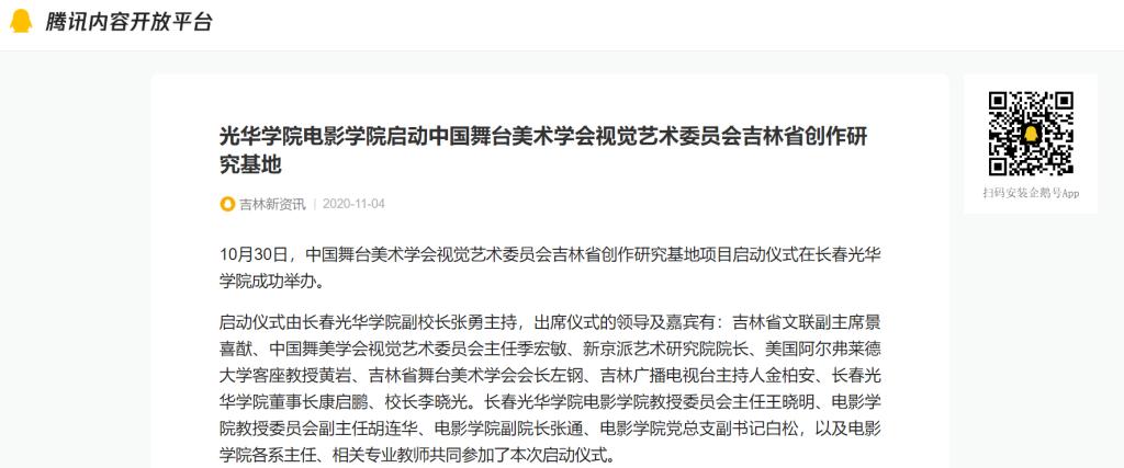 腾讯新闻|光华学院电影学院启动中国舞台美术学会视觉艺术委员会吉林省创作研究基地