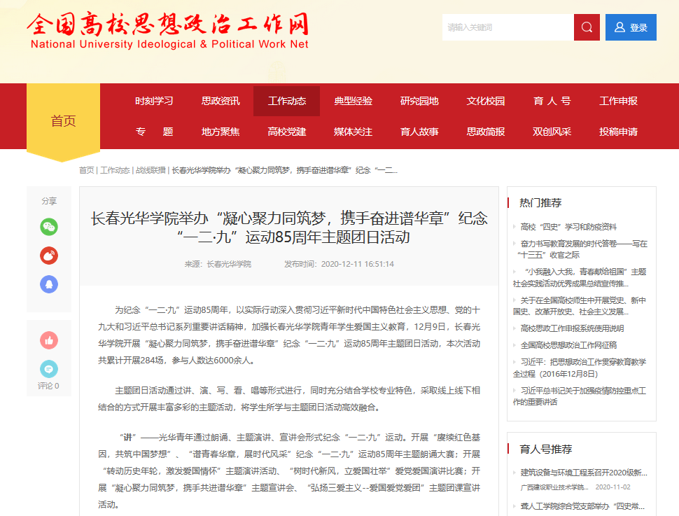 全国高校思想政治工作网|长春光华学院举办“凝心聚力同筑梦,携手奋进谱华章”纪念“一二·九”运动85周年主题团日活动