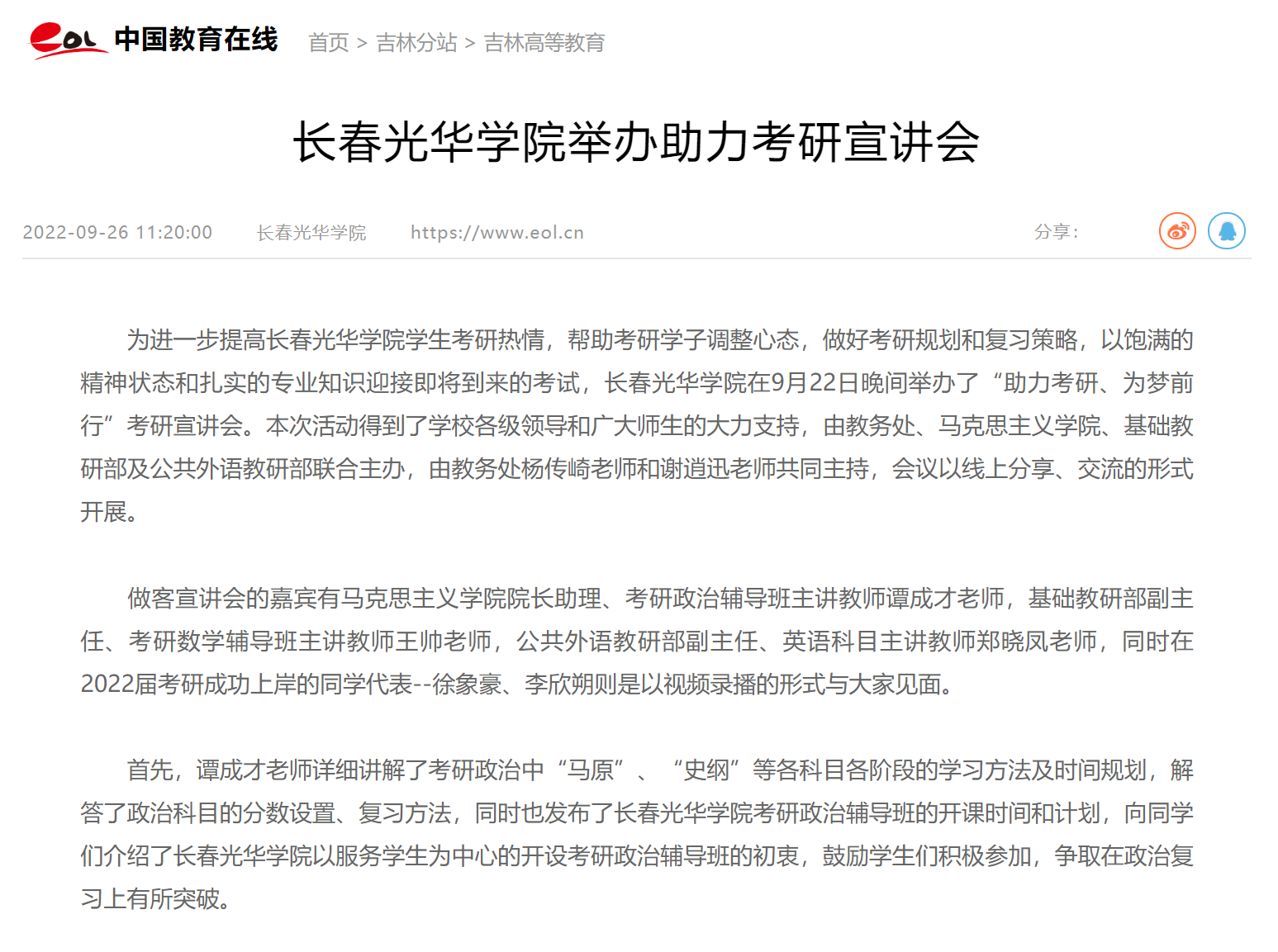 中国教育在线|长春光华学院举办助力考研宣讲会