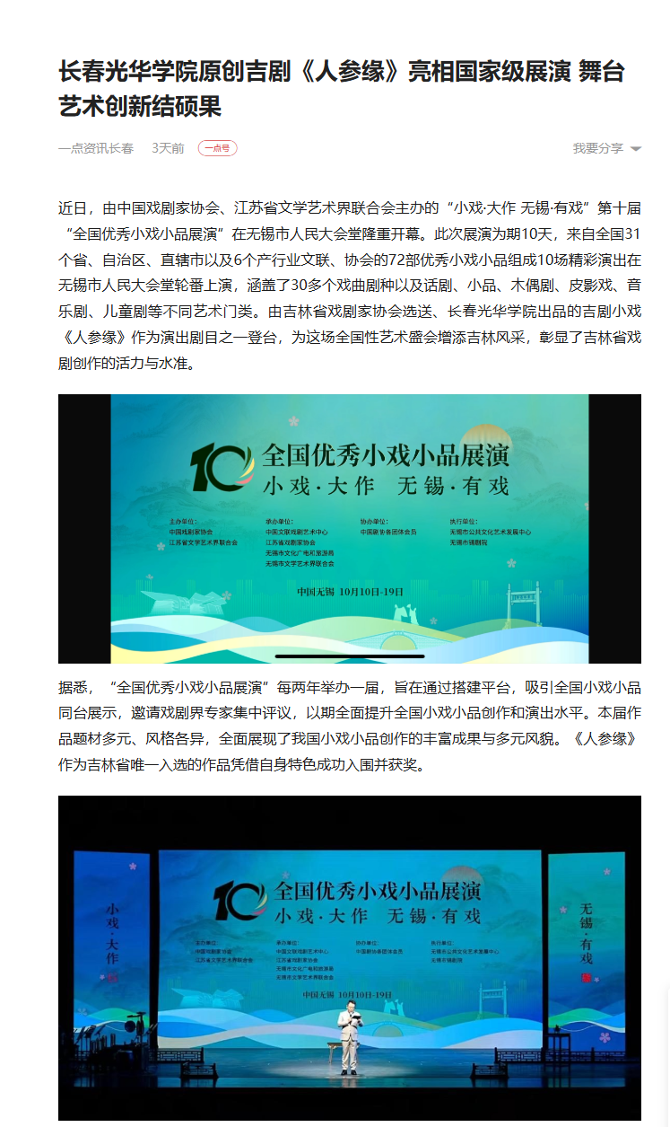 一点资讯|长春光华学院原创吉剧《人参缘》亮相国家级展演 舞台艺术创新结硕果